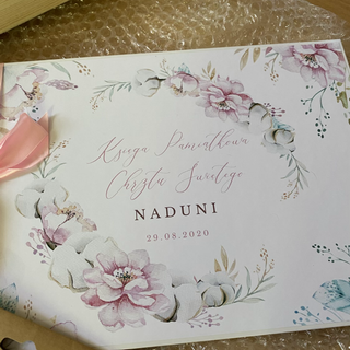 Za nami wieelki dzień oraz wieeelki stres - Chrzest Święty Naduni:) Na szczęście wszystko przebiegło jak należy, a Główna zainteresowana była baardzo grzeczna:) Nie miałam zbyt wiele czasu na samodzielne robienie winietek i dekoracji, więc tym razem zamówiłam w Internecie. Prezentowały się następująco: