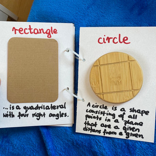 Ilustracje kształtów wraz z podpisami na "gazetce" (u nas ściana;DD). Nasze są czarne, z angielskimi napisami. Nie wprowadzam kolorowych, ponieważ moim zdaniem wprowadza to zamieszanie - dziecko nie będzie wiedziało, czy chodzi o kolor czy kształt (mówię o podpisie).